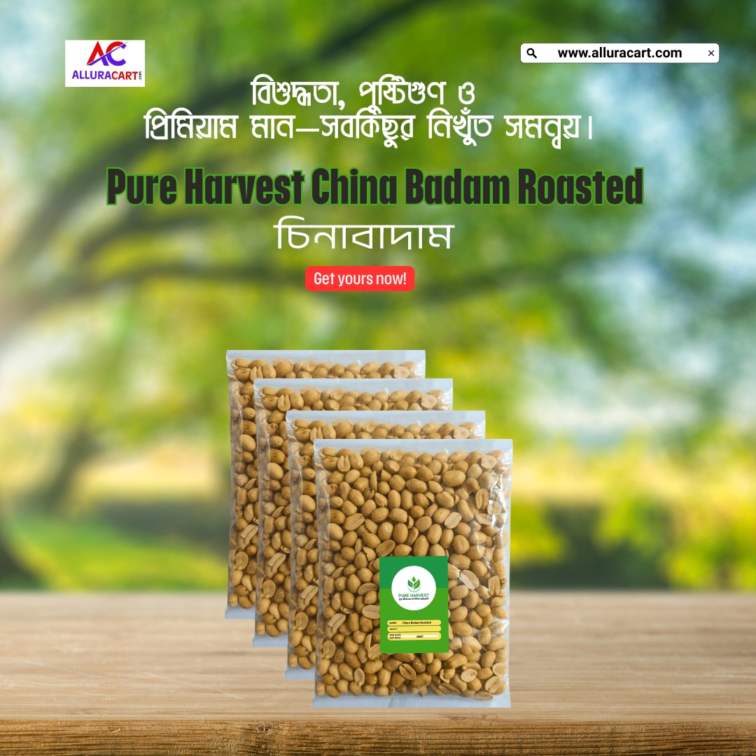 Pure Harvest China Badam Roasted হলো ১০০% বিশুদ্ধ, তাজা ও স্বাস্থ্যসম্মতভাবে ভাজা চিনাবাদাম, যা ক্রাঞ্চি স্বাদে ভরপুর। এতে নেই কোনো কৃত্রিম রঙ, কেমিক্যাল বা অতিরিক্ত তেল— তাই এটি একদম ন্যাচারাল, হেলদি এবং স্ন্যাকস হিসেবে উপযোগী।