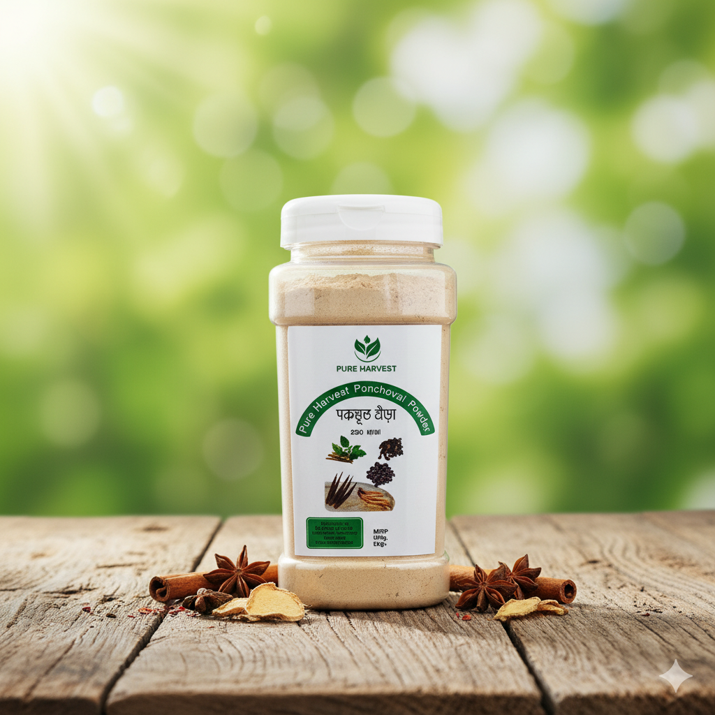 Pure Harvest Ponchovut Powder (পঞ্চভূত গুঁড়া) হলো একটি ঐতিহ্যবাহী হারবাল মিশ্রণ যা পাঁচটি প্রাকৃতিক ভেষজ উপাদান দিয়ে তৈরি — হরিতকি, বহেরা, আমলকি, অর্জুন ও বেল গাছের গুঁড়া।